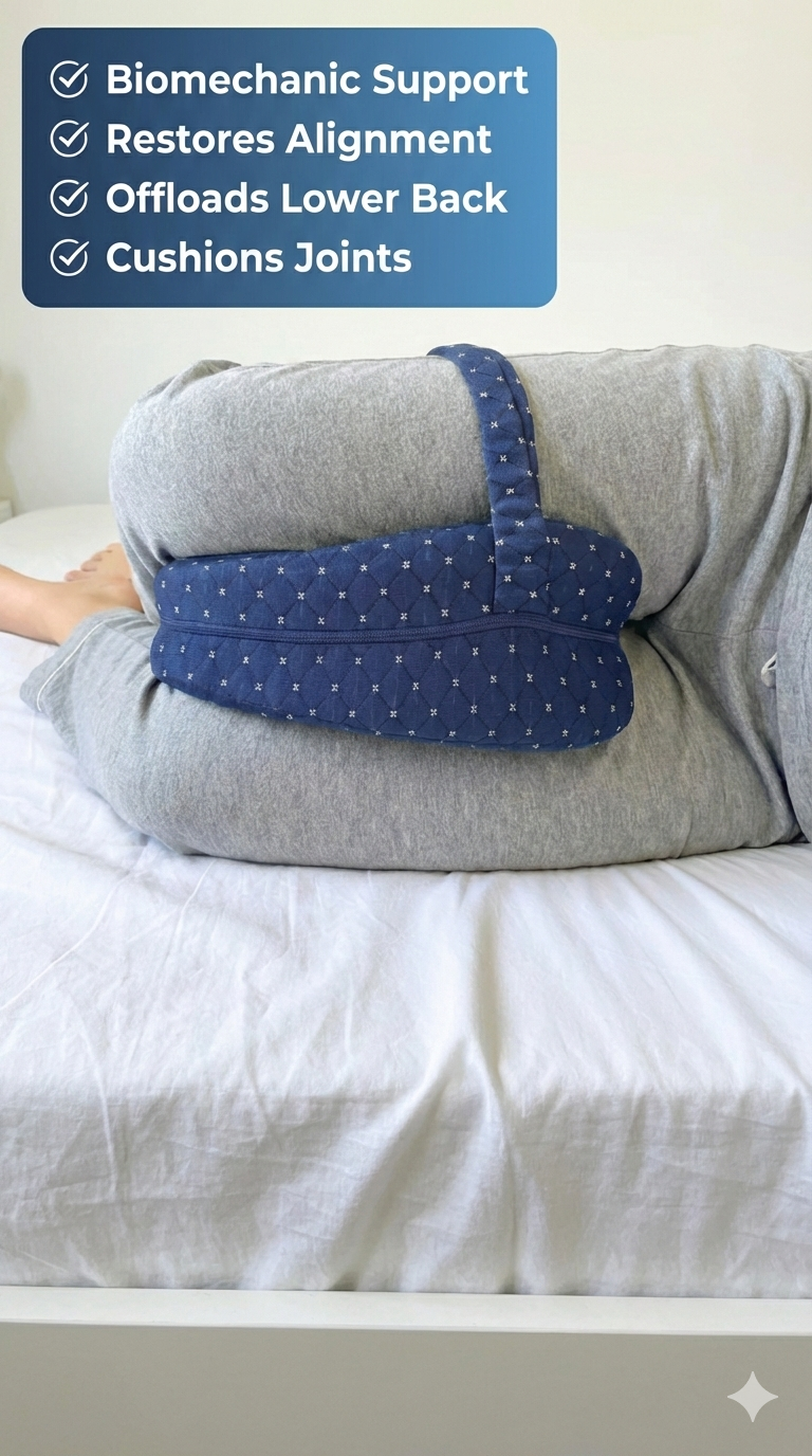 The Alignment Pillow bridges the gap. By nestling comfortably between your knees, it acts as a stabilizer.